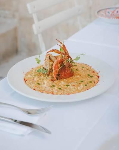 Tentacoli di polpo C.B.T. serviti su crema patata e zafferano, pomodoro secco e prezzemolo riccio