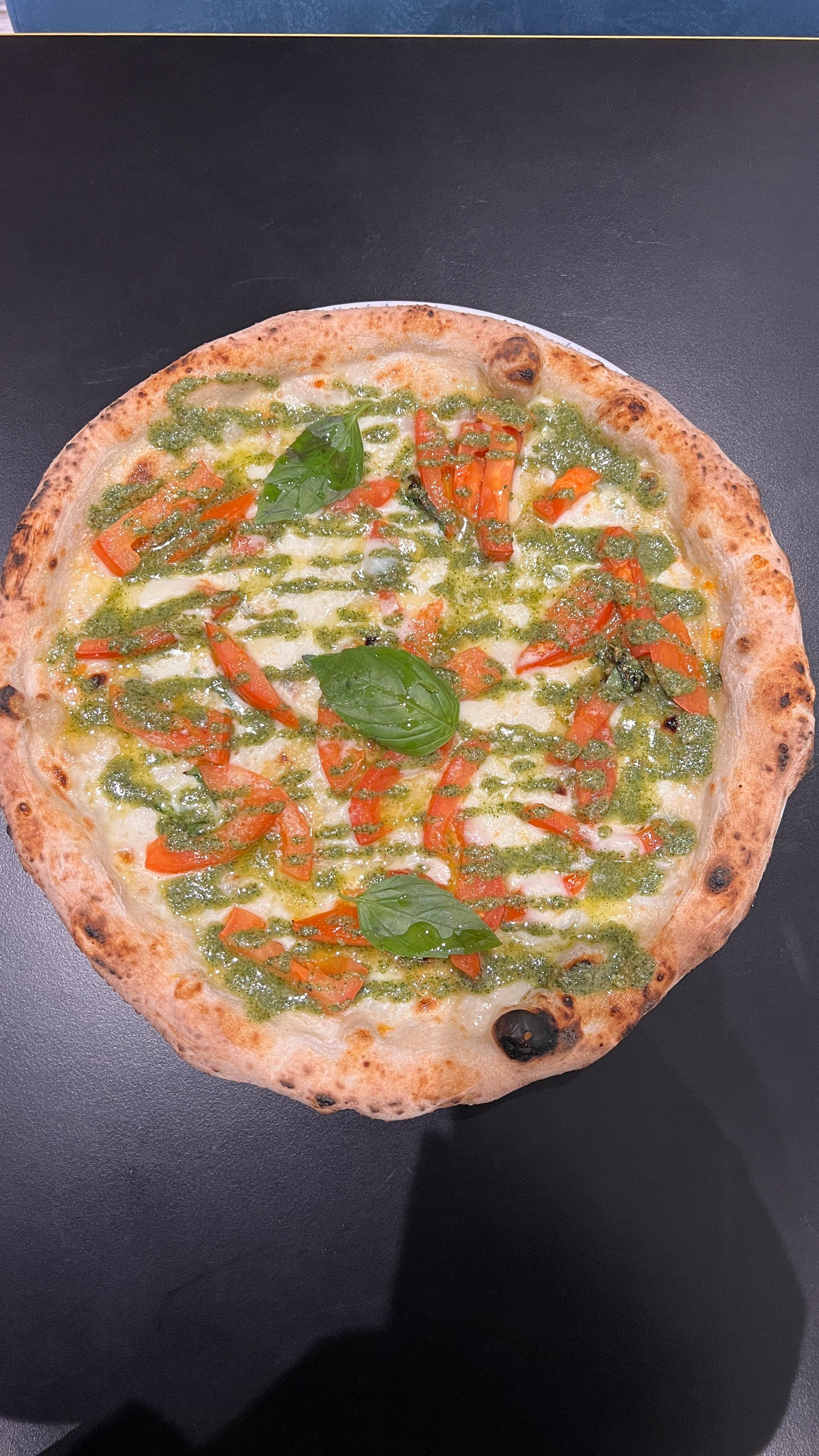 Fiordilatte, Valtellina prosciutto crudo, arugula pesto, extra virgin olive oil, basil