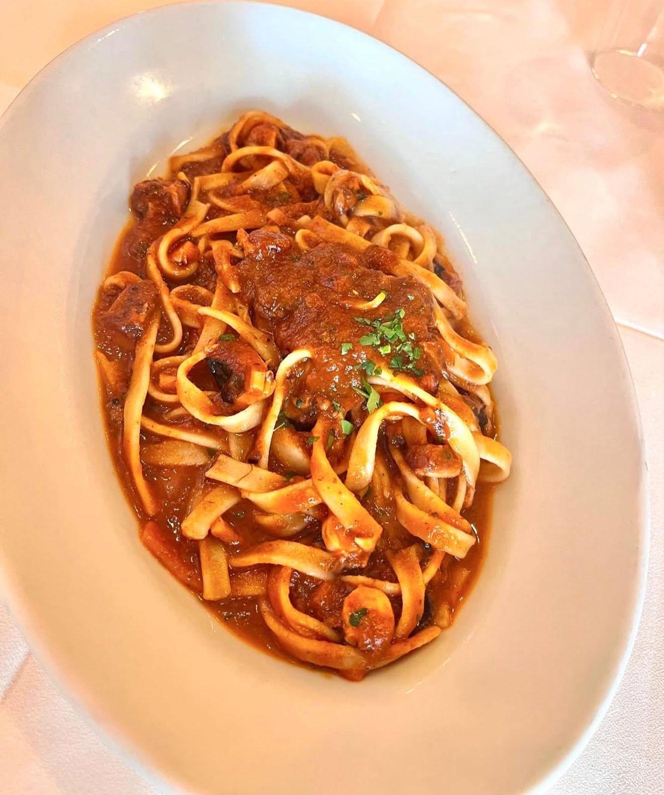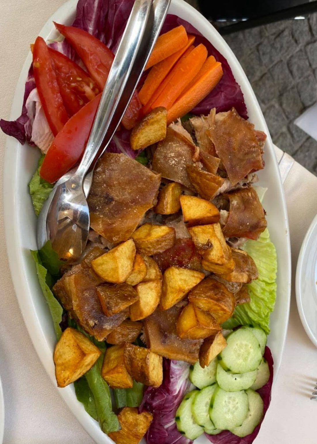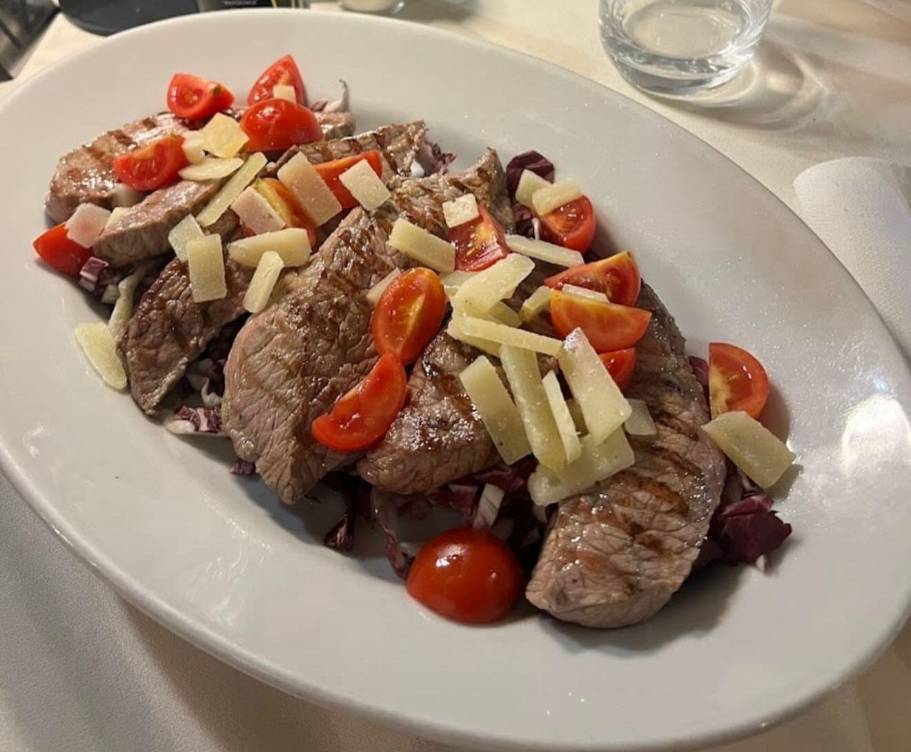 With radicchio, Camona cherry tomatoes and pecorino flakes