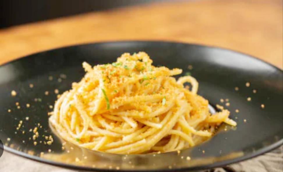 (fresh paccheri, Nebrodi black pork ragù, garlic, carrots, onion, tomato)