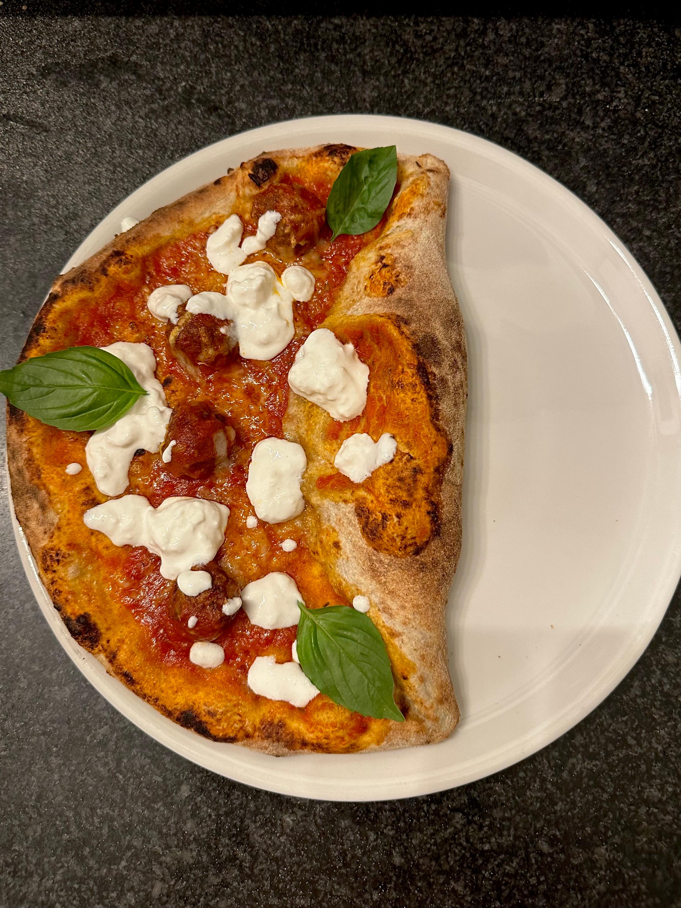 (stracciatella, anchovies, dried tomatoes, organic perciasacchi flour)