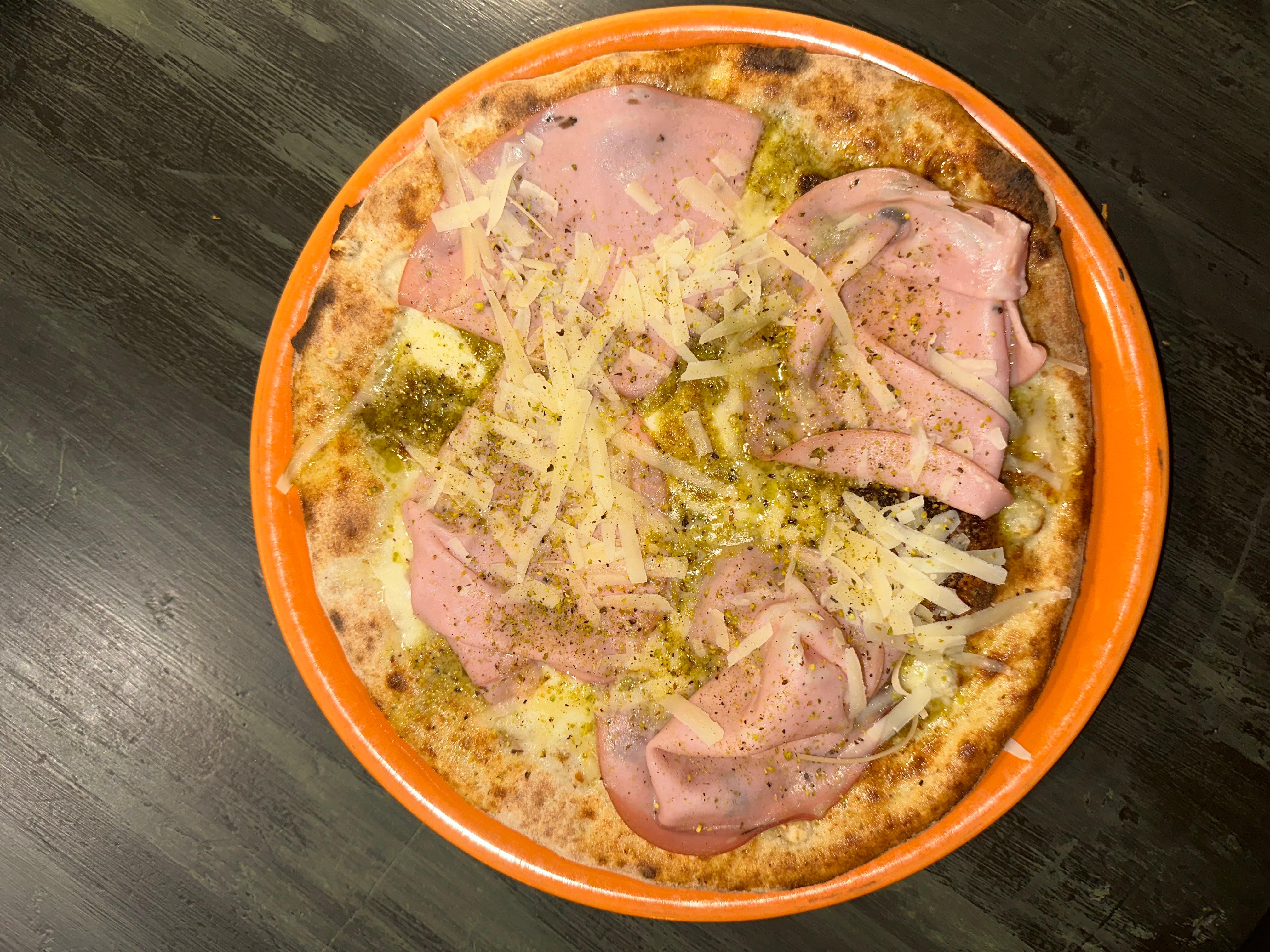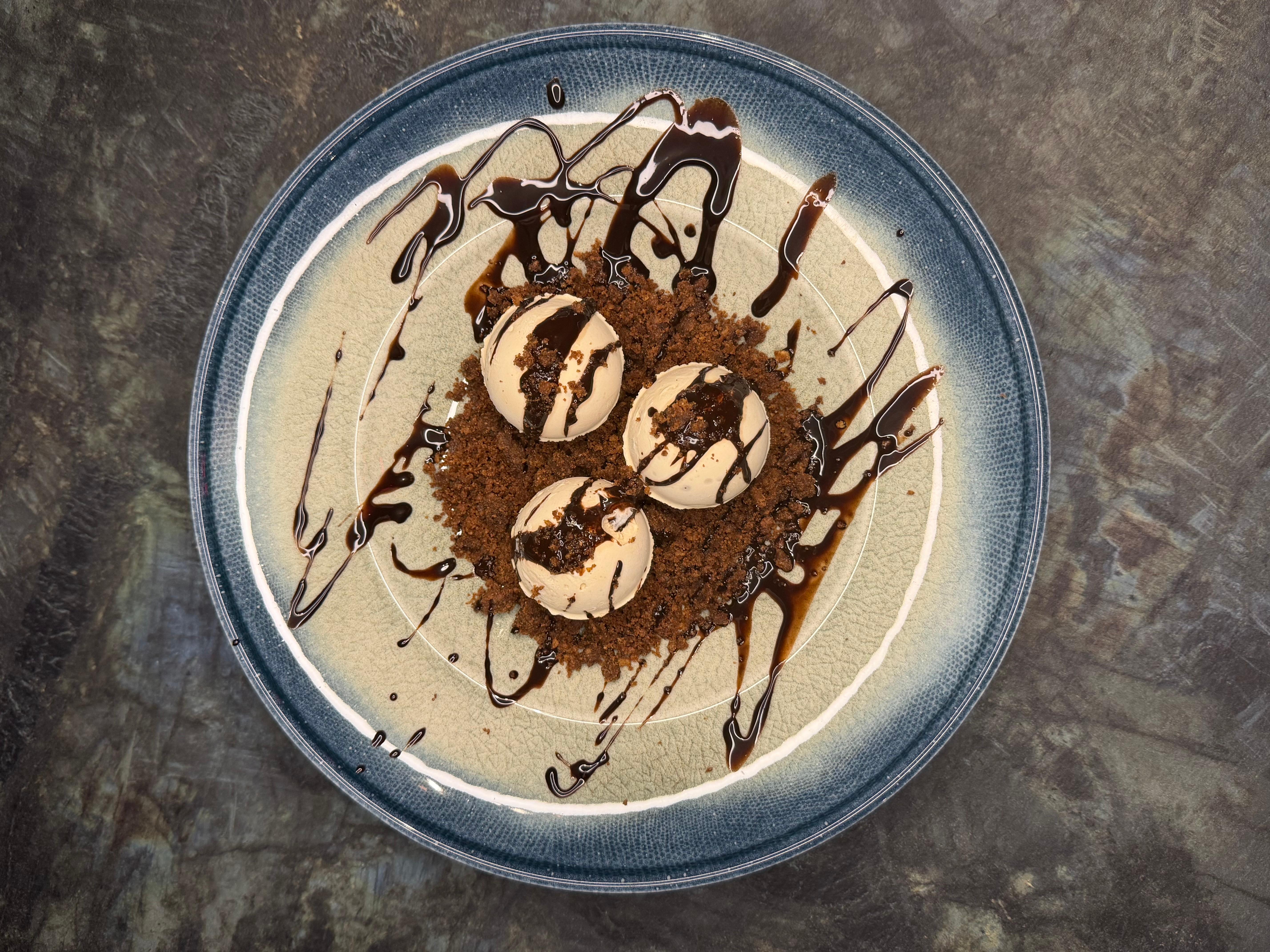 (truffle mortadella, stracciatella, cocoa flour and hazelnuts)
